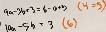[itex]9a-3b+3=6-a+b[/itex] (4=5)